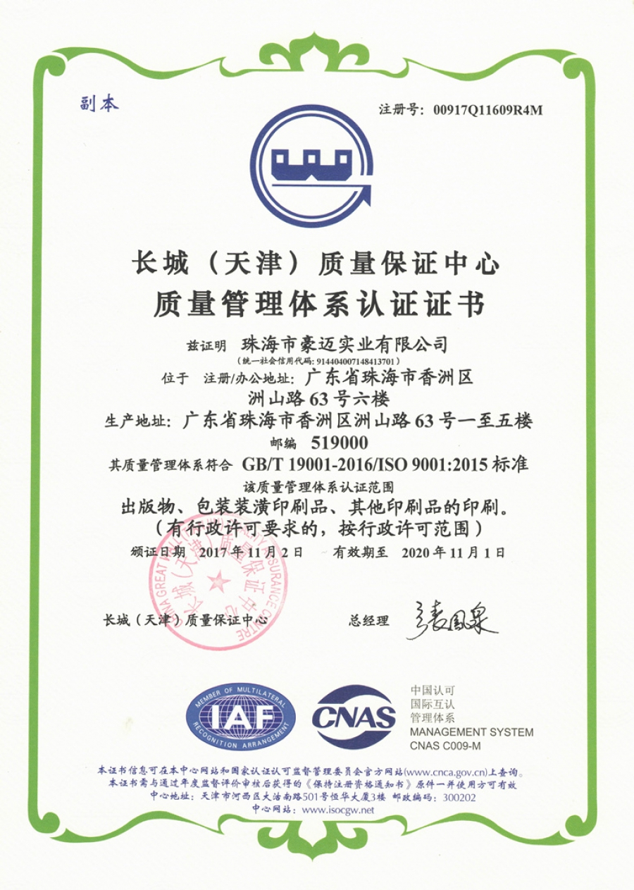 质量管理体系证书